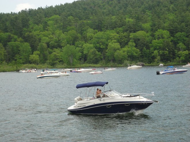 I posted this photo of my hubby on our boat on Memorial Day to FaceBook and I won $100 in gas from Boats By George.