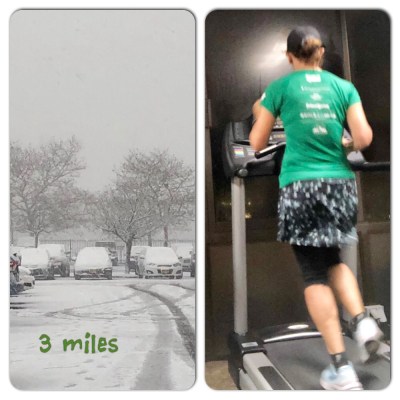 - Thursday – Well almost another Rest Day. I planned to run on the treadmill before work but bailed. After work, I had to tackle the long slow drive home from LI. It was forecast to rain but it turned out to be a blizzard so I spent an extra night there. And guess what? I actually ran on the hotel treadmill. Hated every second but got it done.