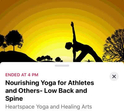 After brunch, I rushed home because I signed up for my 2nd yoga class of the week. I wasn’t planning to but this one was designed for runners and focusing on lower back and spine.  Yup, just what I needed. I plan to go again next month.