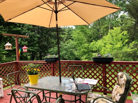 I bought a patio umbrella so I can sometimes work outside.