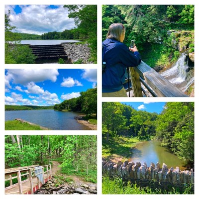 I have already hiked 31 places during this pandemic. One with the hubby but the rest all alone. More and more of my friends are open to doing things together (but 6 ft part lol). So my former teaching BFF agreed to wait until I was done working to do a short hike together. I returned to one of the first places I visited back in March. You can see from the pic on the left that it is a lot greener now. And it was so nice to have company … finally. On the way home, I stopped by one more trail (that I also have previously visited in March.).