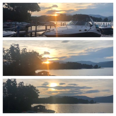 • Sunday – Boating on Lake George.  Although it was predicted to rain in the am then storm in the afternoon, we decided to ignore the forecast and go up to the lake.  Glad we did since there was NO rain…just an occasional cloud.  So relaxing.  Love my lake get-away.