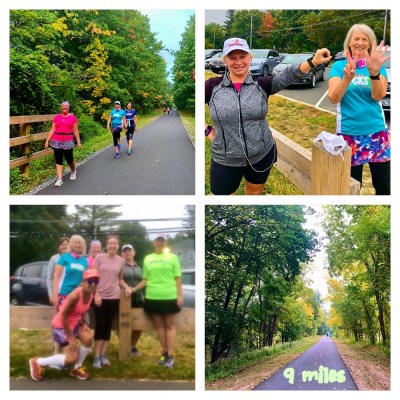 - Saturday – LONG RUN DAY. Back on the rail trail. I had thought of running on Sunday but since the hubby decided to play tennis, I decided to meet friends to run. It was our last run because of our virtual half marathon in NH next weekend. I ran early and then met Deirdre, Jan and Debbie for our run/walk interval run while the others walked. It was painless which made me happy.
