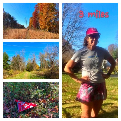 yes, skirt weather in November…the run was slow and hard due to tired legs, lots of leaves, sticks and pine cones on the trail (a hidden message in one of the pictures)