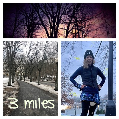 - Tuesday – Still cold and grey but the wind was not as bad as Monday and it was WARMER so I was able to squeeze in a run during lunch.