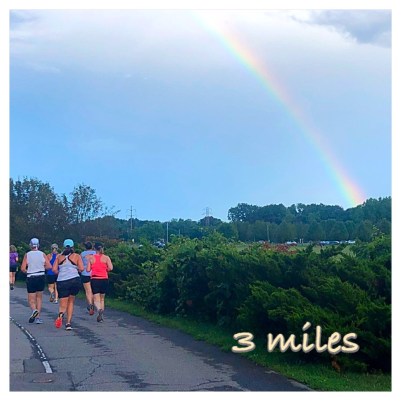 Well, the rain stopped before the run and we got treated to a rainbow.  What didn’t stop was the HUMIDITY!!