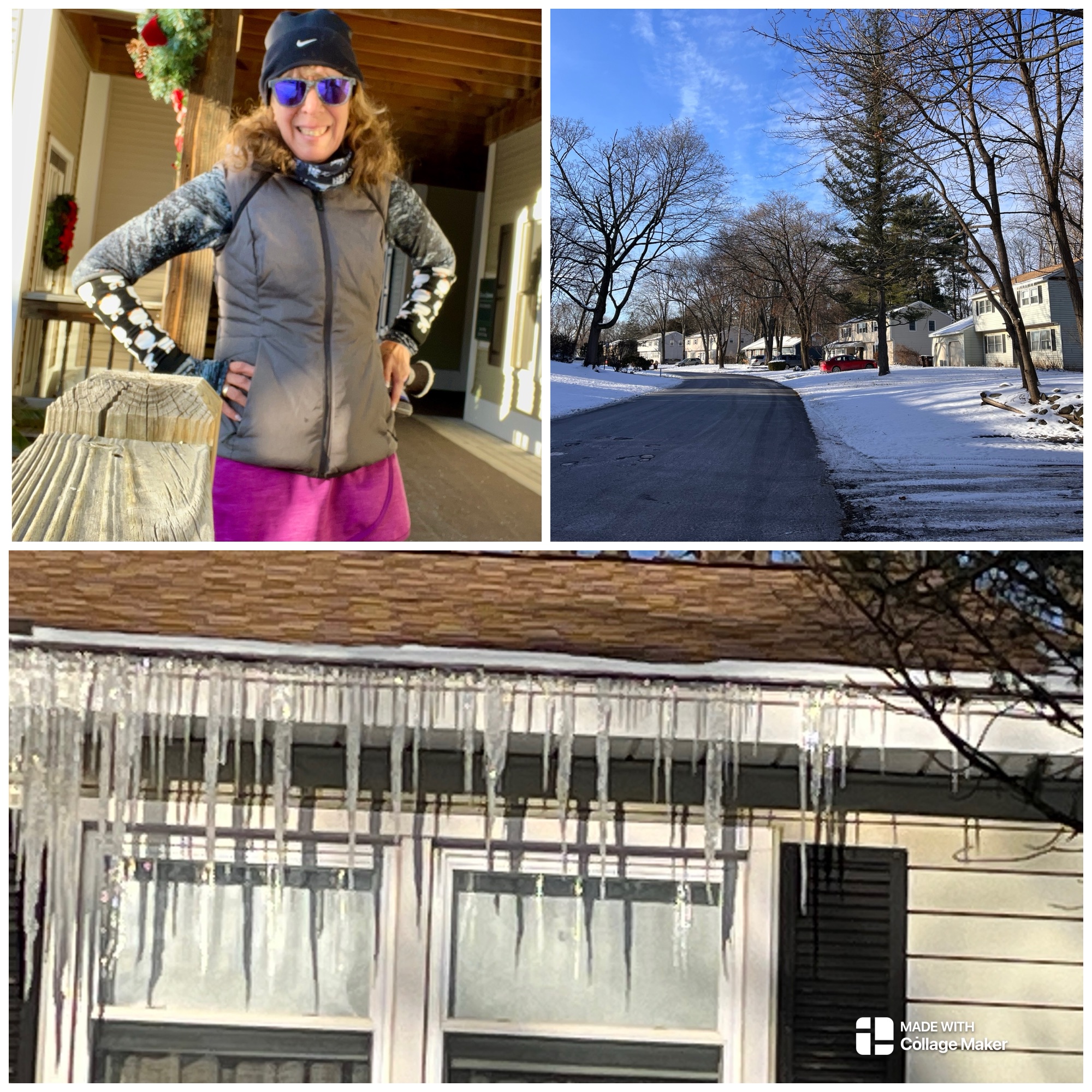 J/K sent a pic of their ice rink driveway complete with puck. Glad you stayed upright. My long run didnm’t happen either. Oops! But hey a blog post did!