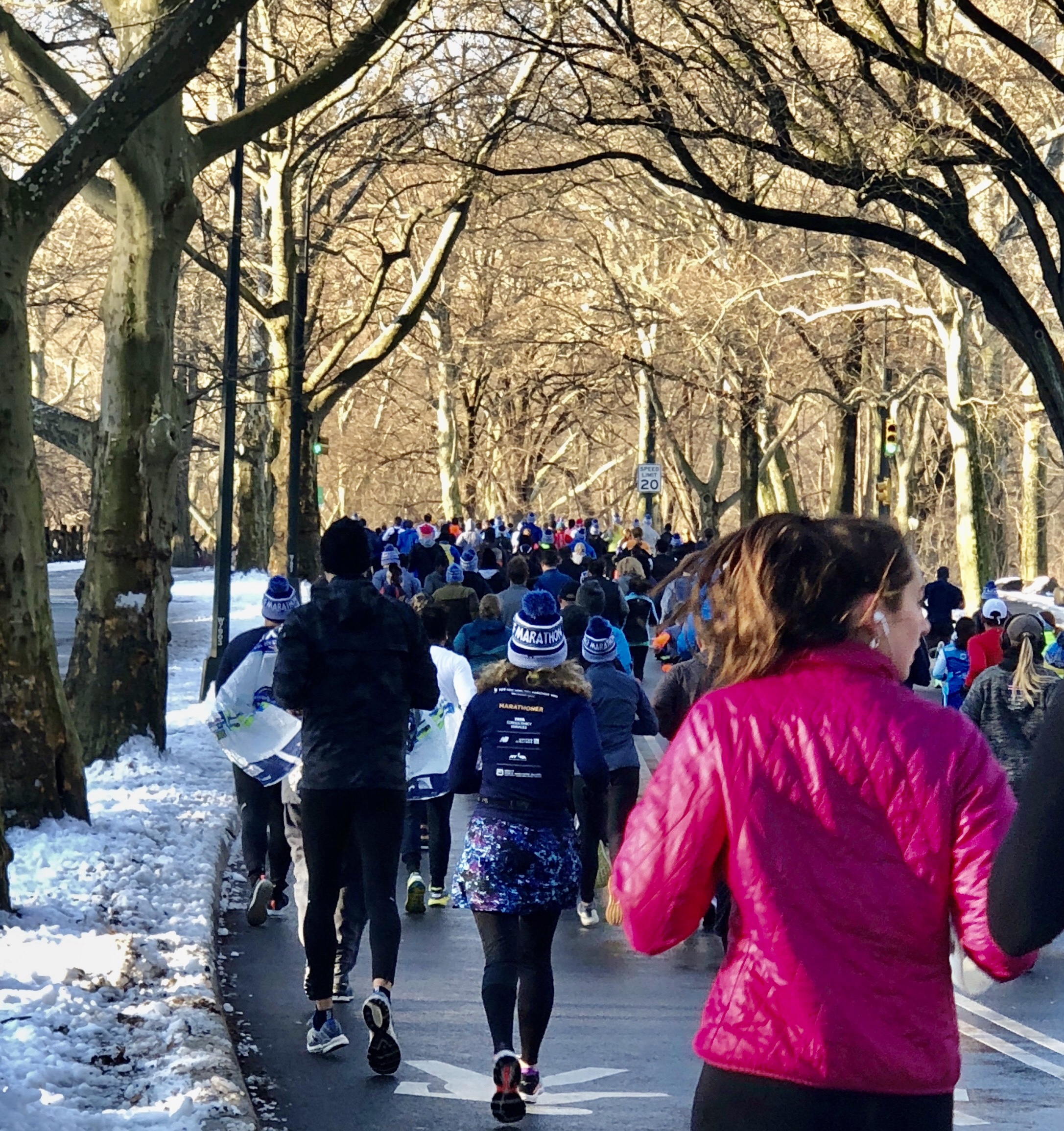 I had plans to meet Stan (who was taking the subway from Brooklyn) before the race. I got there way too early. It was easy to find the start and bag check. But an hour waiting in the freezing cold was too much.