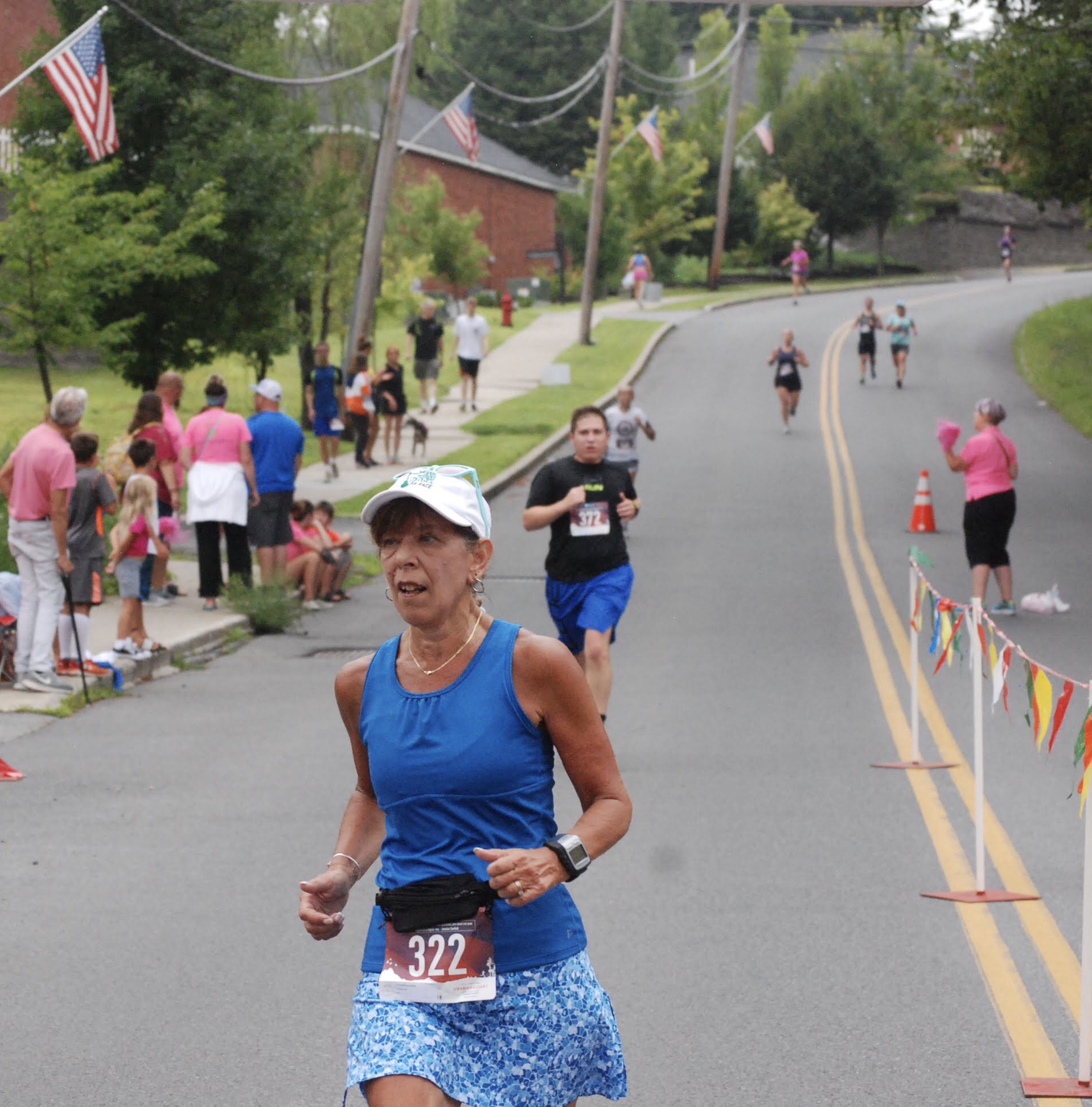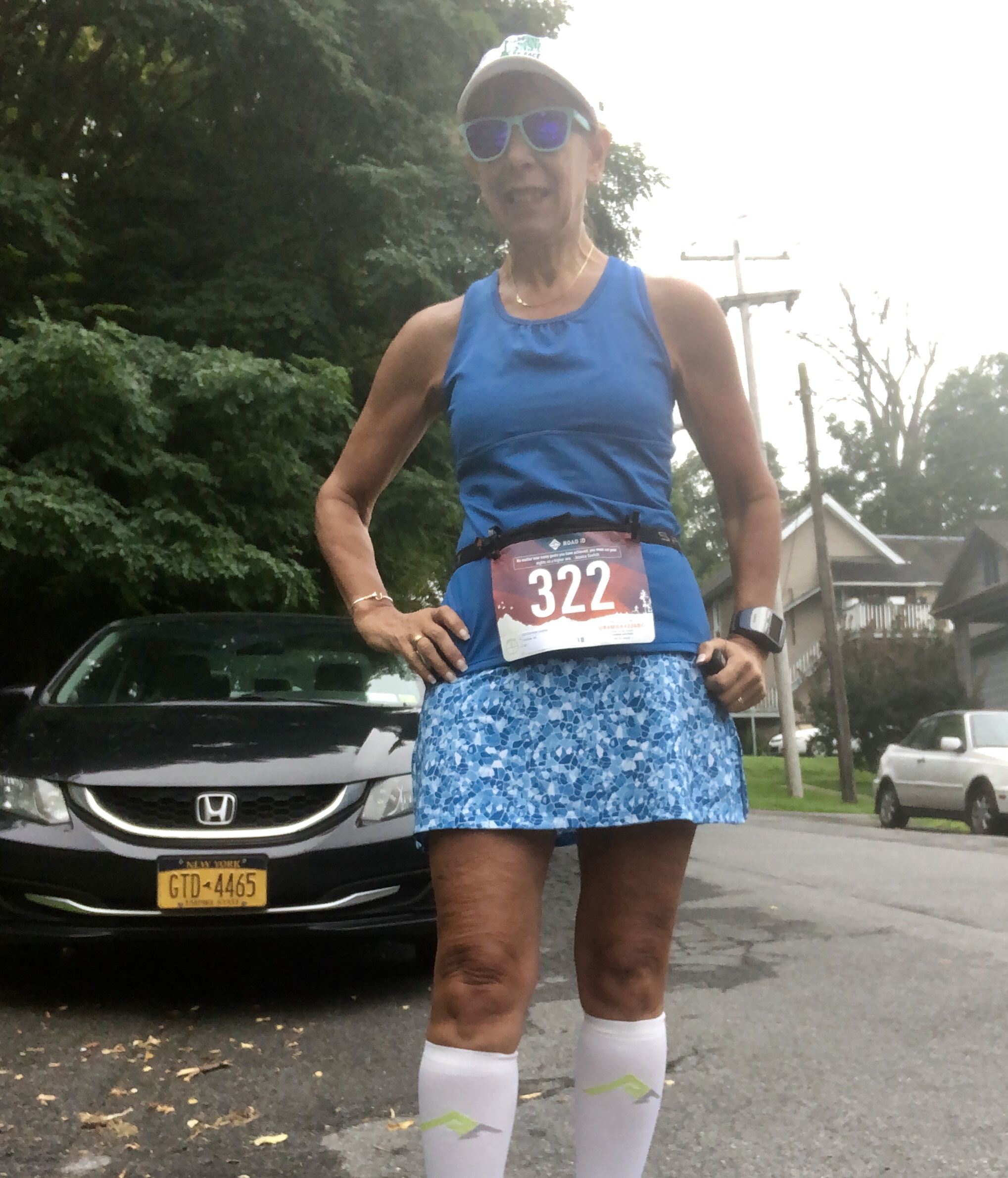 I ran next a lady struggling with knee pain. We decided to help each other get to the finish (and swore together about adding that 3rd Harlem Hill).
