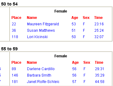No one won an award since they only gave out medals for the top 3 finishers. No age group awards! Darn! I would have won 3rd or 1st!!
