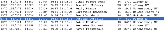 B– finish in less time than my 1st 2 Freihofer’s (2nd=35:05, 32 my time, lst=33:29)