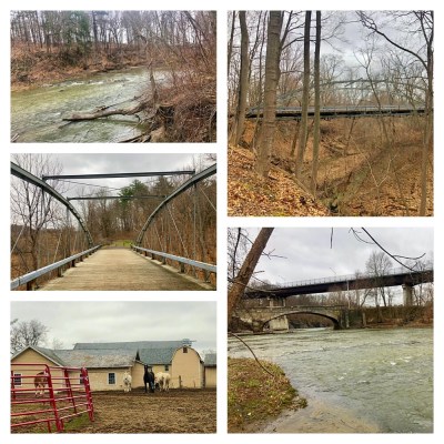 Barbersville Falls (top left) and then the ridge trail (with lots of creek crossings) and then the nearby Creek trail (bottom pics).